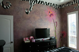Murals, Faux Finishes, Specialty Finishes or combining any of the three is a perfect way to create a room that expresses your child's personality. Warm and soothing evironments for children of any age.