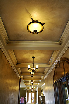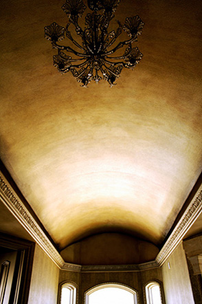 Tea Room Moulding and Medallion are gold and copper leafed and embellished with glazing