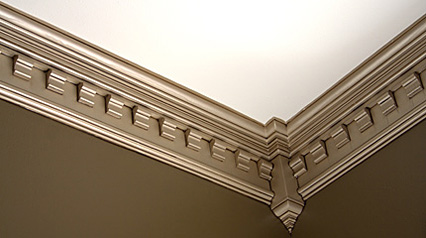 Tea Room Moulding and Medallion are gold and copper leafed and embellished with glazing